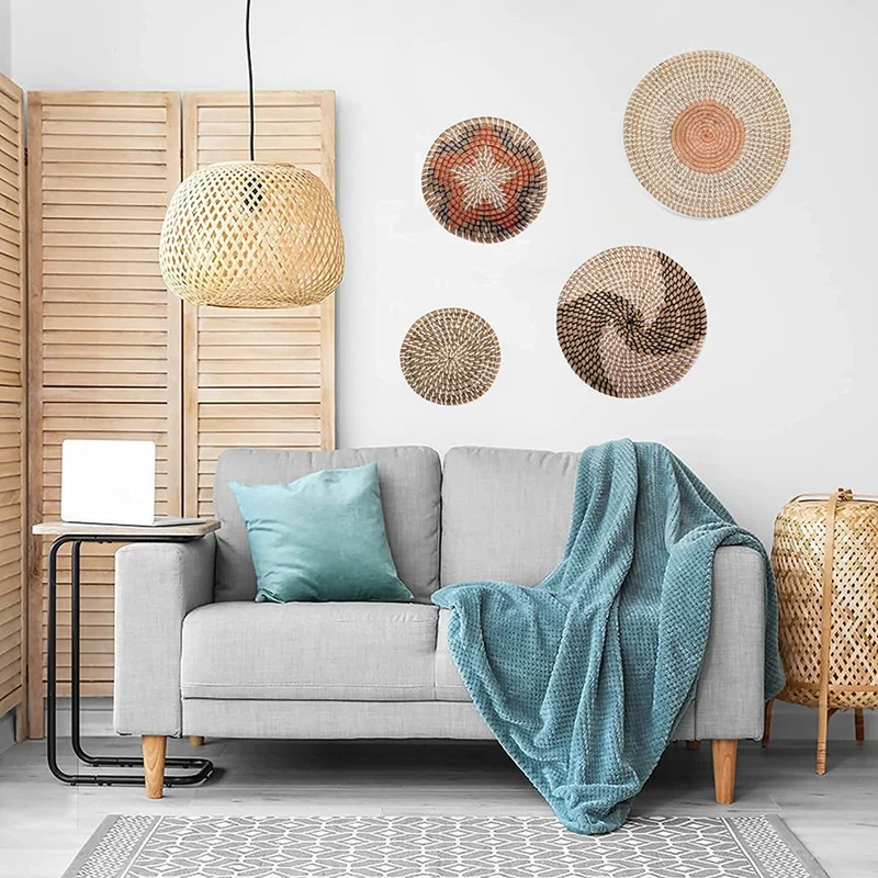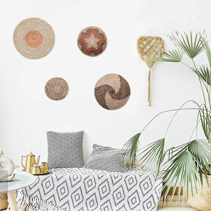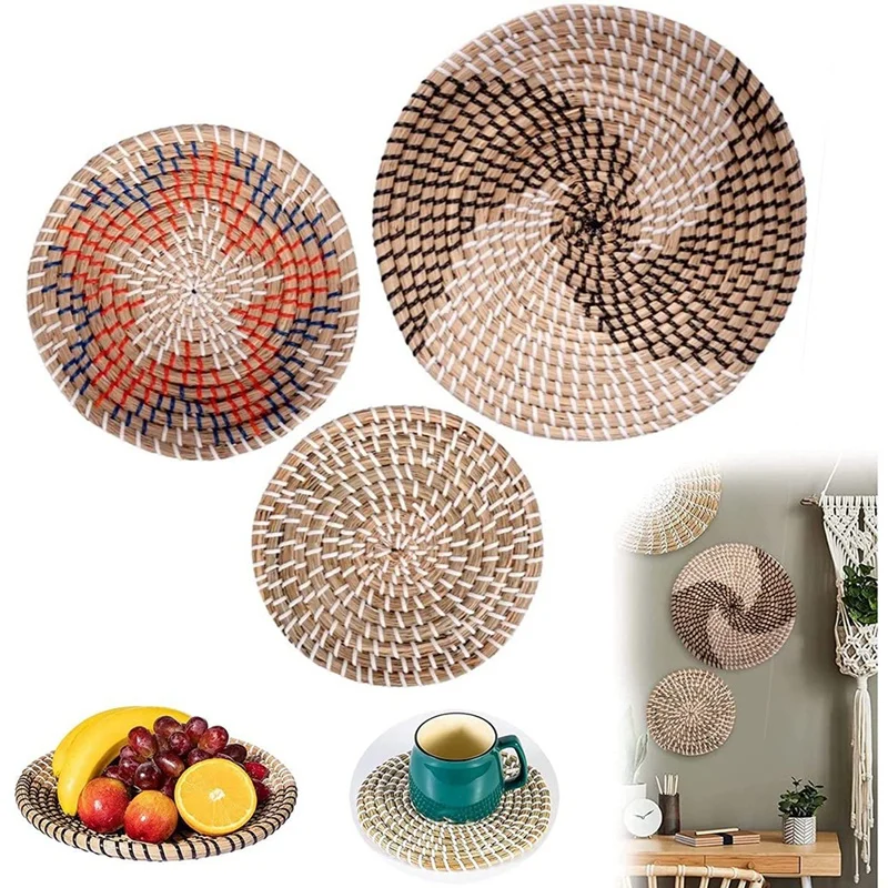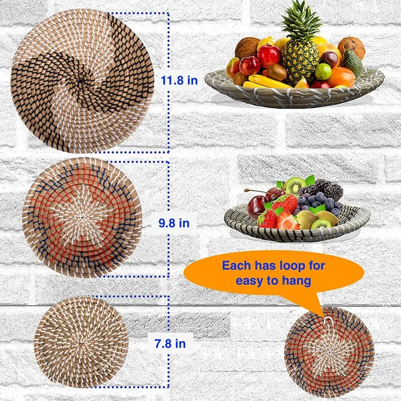 Boho Wall Decor Woven Bowls Set, Handmade Natural Seagrass Boho Baskets, For Dining Room, Bedroom, Living Room Etc, 3Pcs